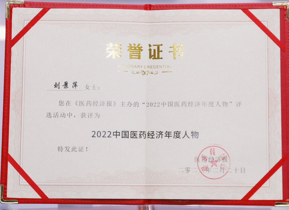918博天堂药业集团董事长刘景萍当选“2022中国医药经济年度人物”